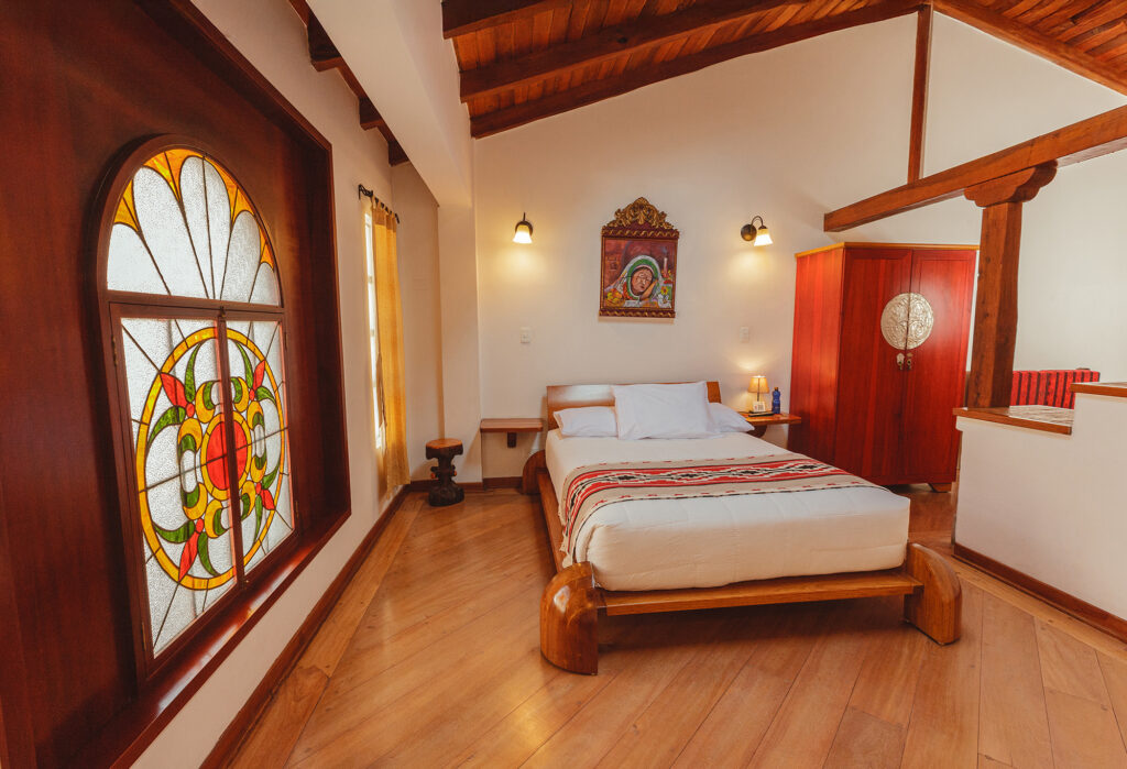 Suit con una cama matrimonial, un ático con una cama individual, mini sala, desayunador, cocina y nevera, permite incorporar una cama individual adicional si se requiere, para alojar hasta cuatro personas, TV Plasma 43″, servicio de TV Cable 70 canales, Wifi de alta velocidad.